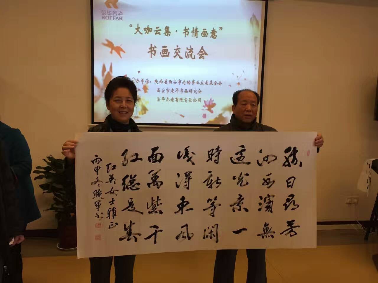 11月18日上午,由陕西省西安市老龄事业发展基金会和西安市老年书画研究会主办,荣华养老有限责任公司承办的“大咖云集—书情画意”书画交流会在户县荣华亲和源顺利举行。